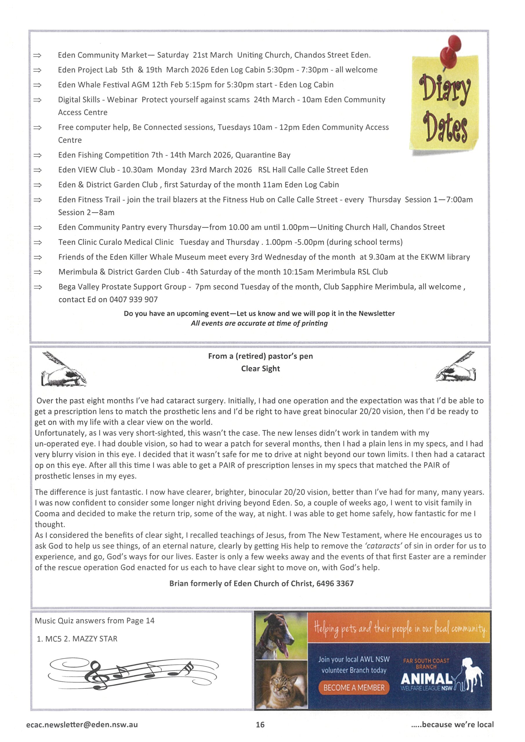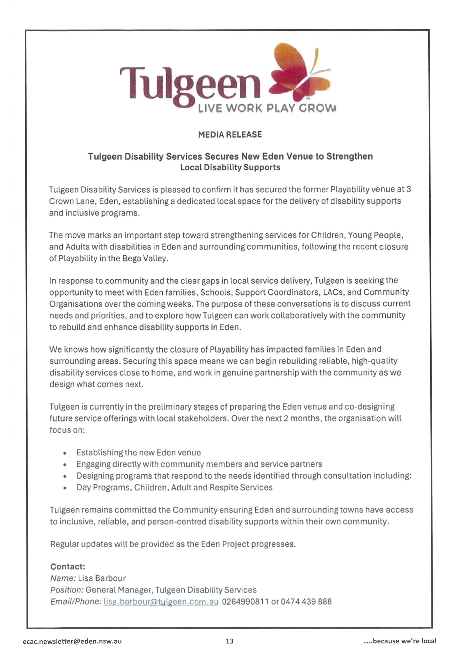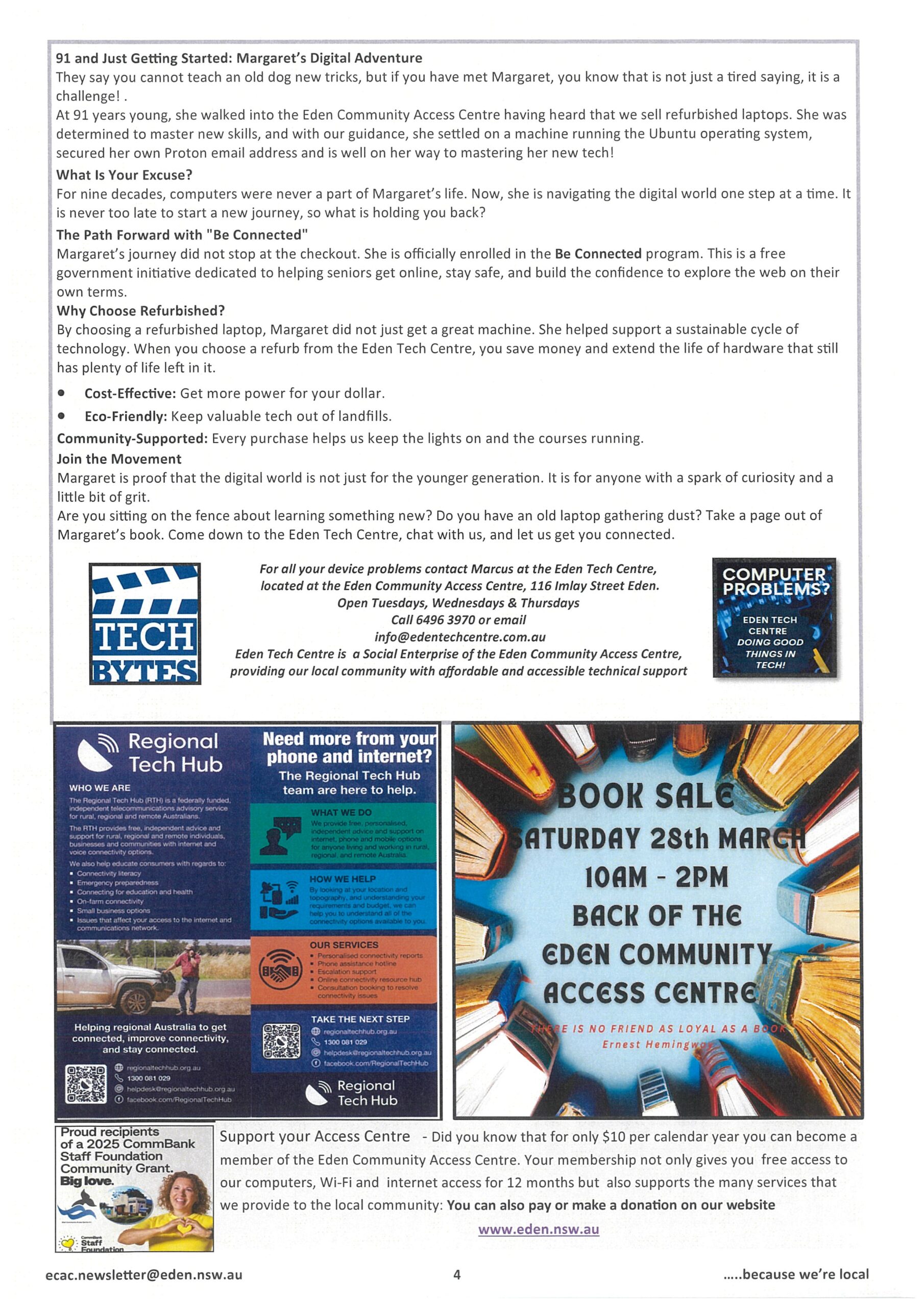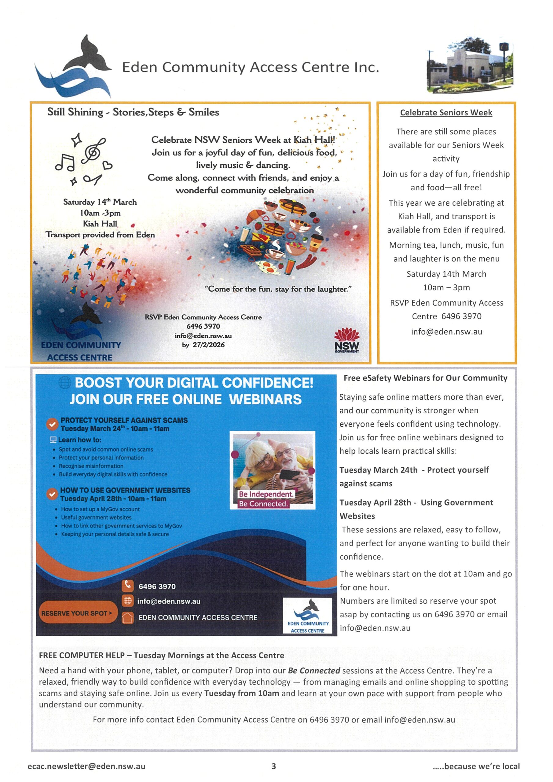 Browse our latest #The Eden Connection newsletter issues or follow us on Facebook @EdenCommunityAccessCentreInc to stay in touch with Eden’s Community.