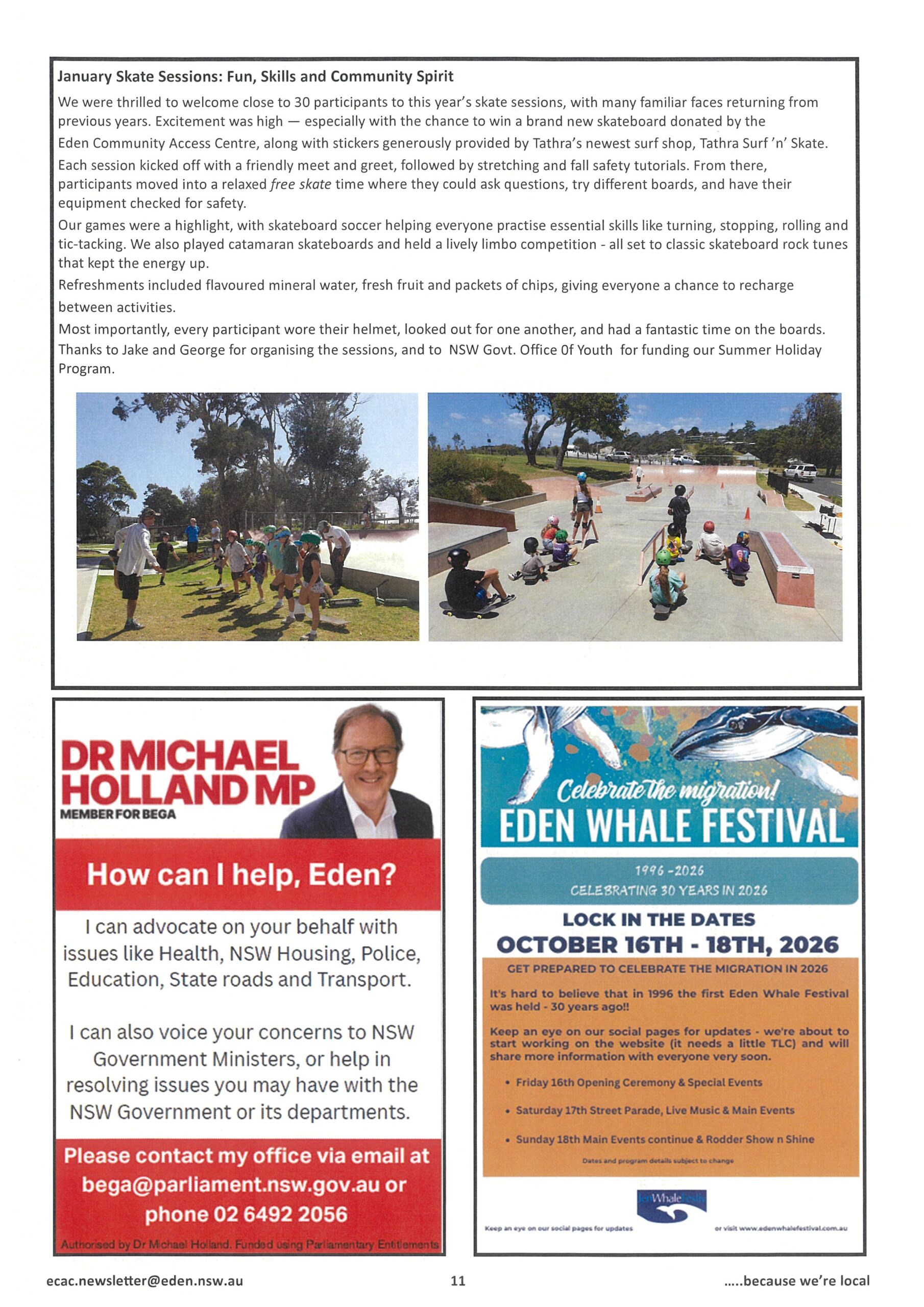 The Eden Community Access Centre’s Annual General Meeting was held on Thursday 20th November.The following were voted on to the board: Peter Skelton – Chairperson, Joy Robin – Vice Chair, […]