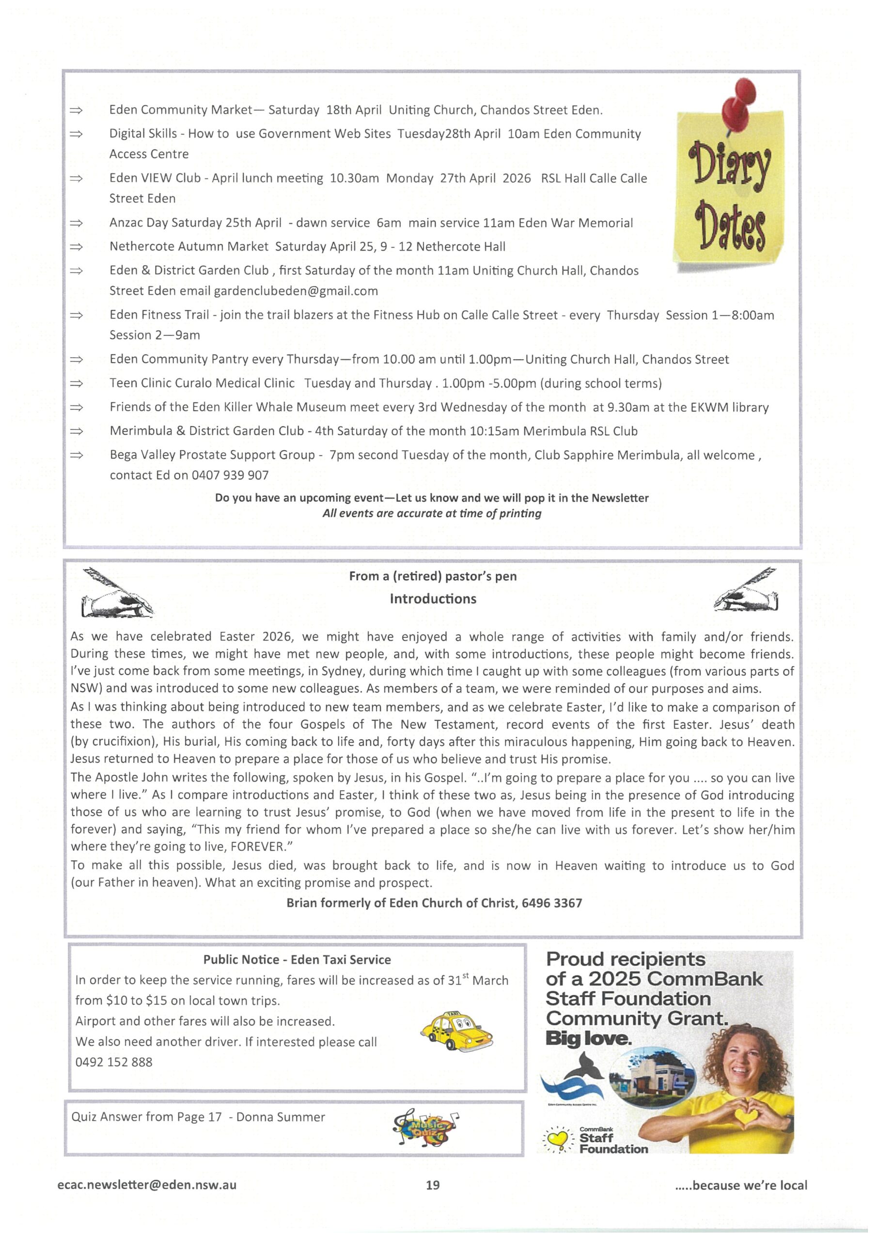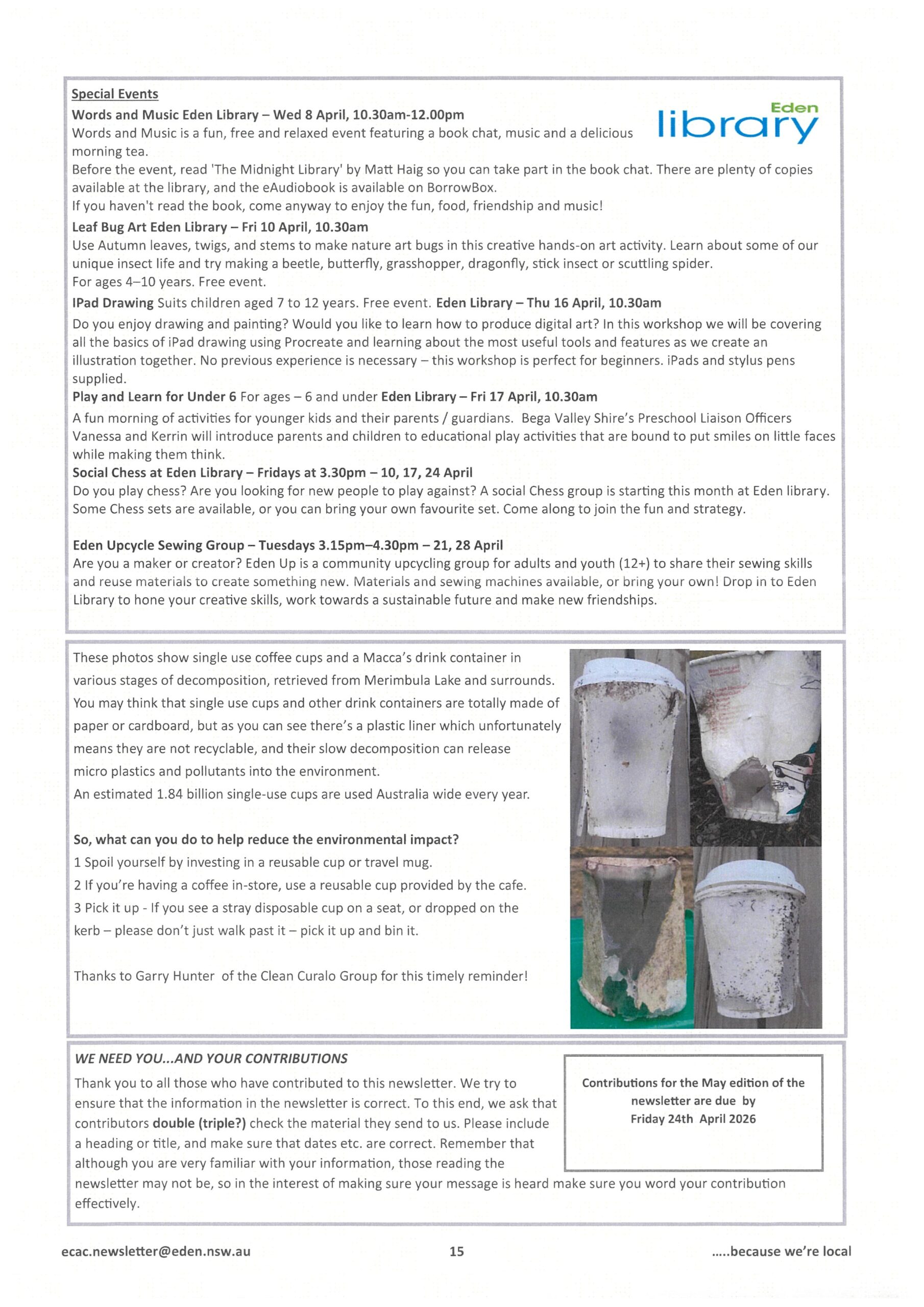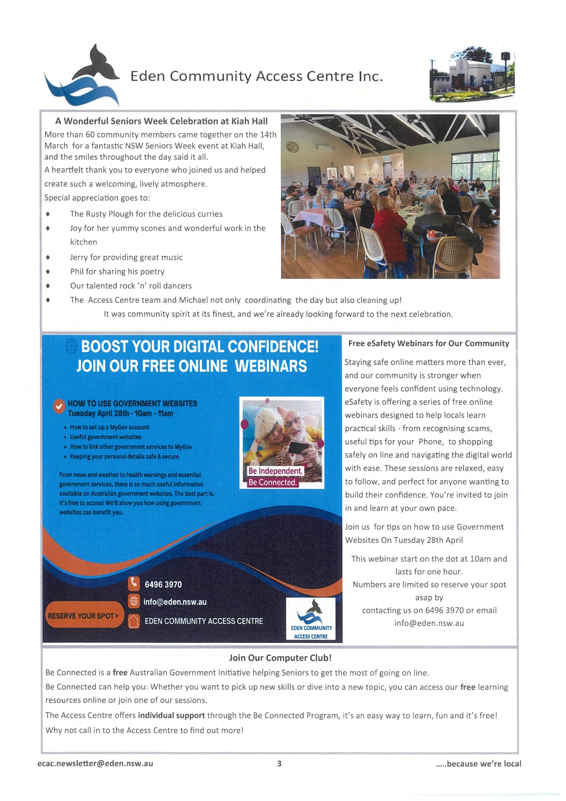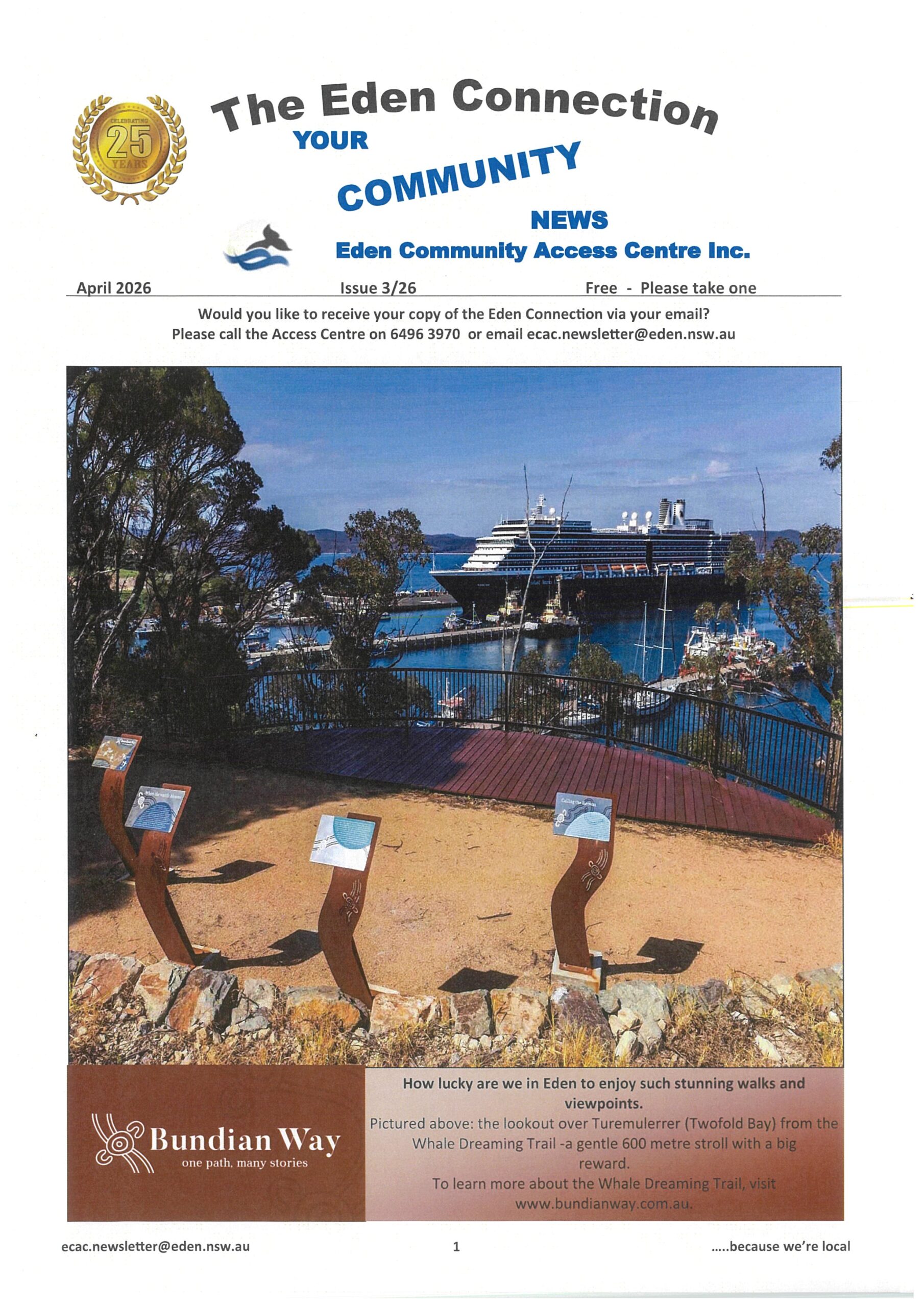 Browse our latest #The Eden Connection newsletter issues or follow us on Facebook @EdenCommunityAccessCentreInc to stay in touch with Eden’s Community.