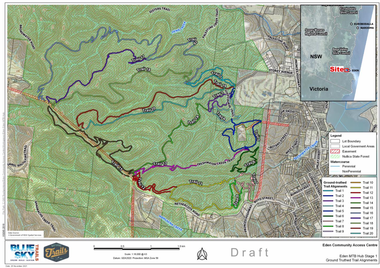 The Gravity Eden Mountain Bike Park was officially opened on 25th November 2023. If you have questions about the park visit their web site https://www.gravityeden.com.au/ or contact the Eden Mountain Bike Club at edenmtb2551@gmail.com