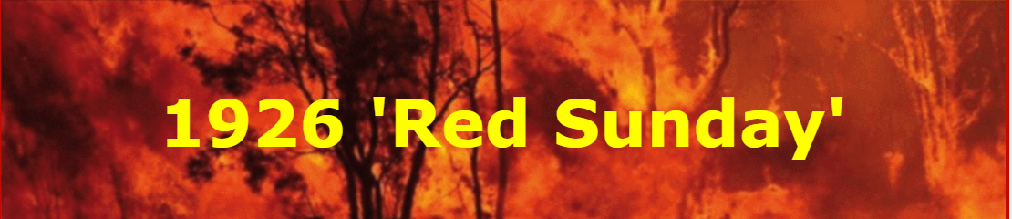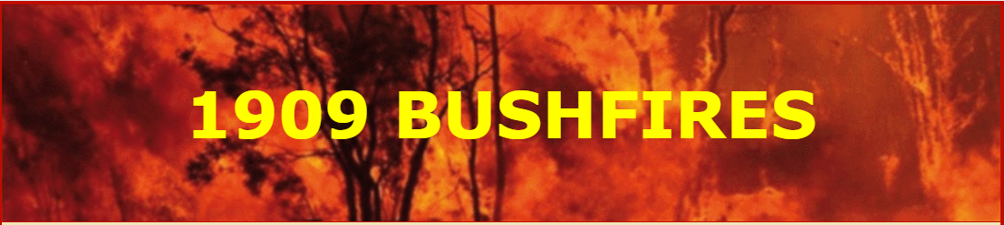 Fires, which had been burning slowly in many areas over the past few weeks, were whipped up by the hot north-westerly on Friday morning last and became avenging monsters of red flames and choking smoke which hungrily devoured all before it and left in its wake smouldering ruins of houses, blackened trees and bare scorched earth which would bring tears to the eyes of the most hardened observer.
