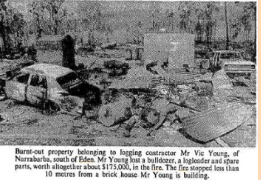 Friday, January 25, 1952 will live in the memories of our present generation as the day of the most devastating and destructive fires ever experienced on the Far South Coast Early in the morning a fierce hot north-west wind was in evidence and it soon became apparent that trouble was brewing for the coastal area.