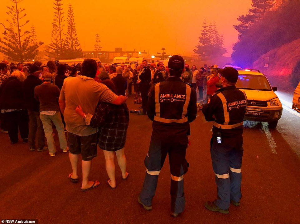 On Saturday night, as the fire approached, Matt Proctor, a fisherman, took his partner and two children on to his dinghy and took shelter in a harbour near the town. In pitch black and surrounded by acrid smoke, they tried to wait it out as relentless gusting winds buffeted them and ash rained from the sky.