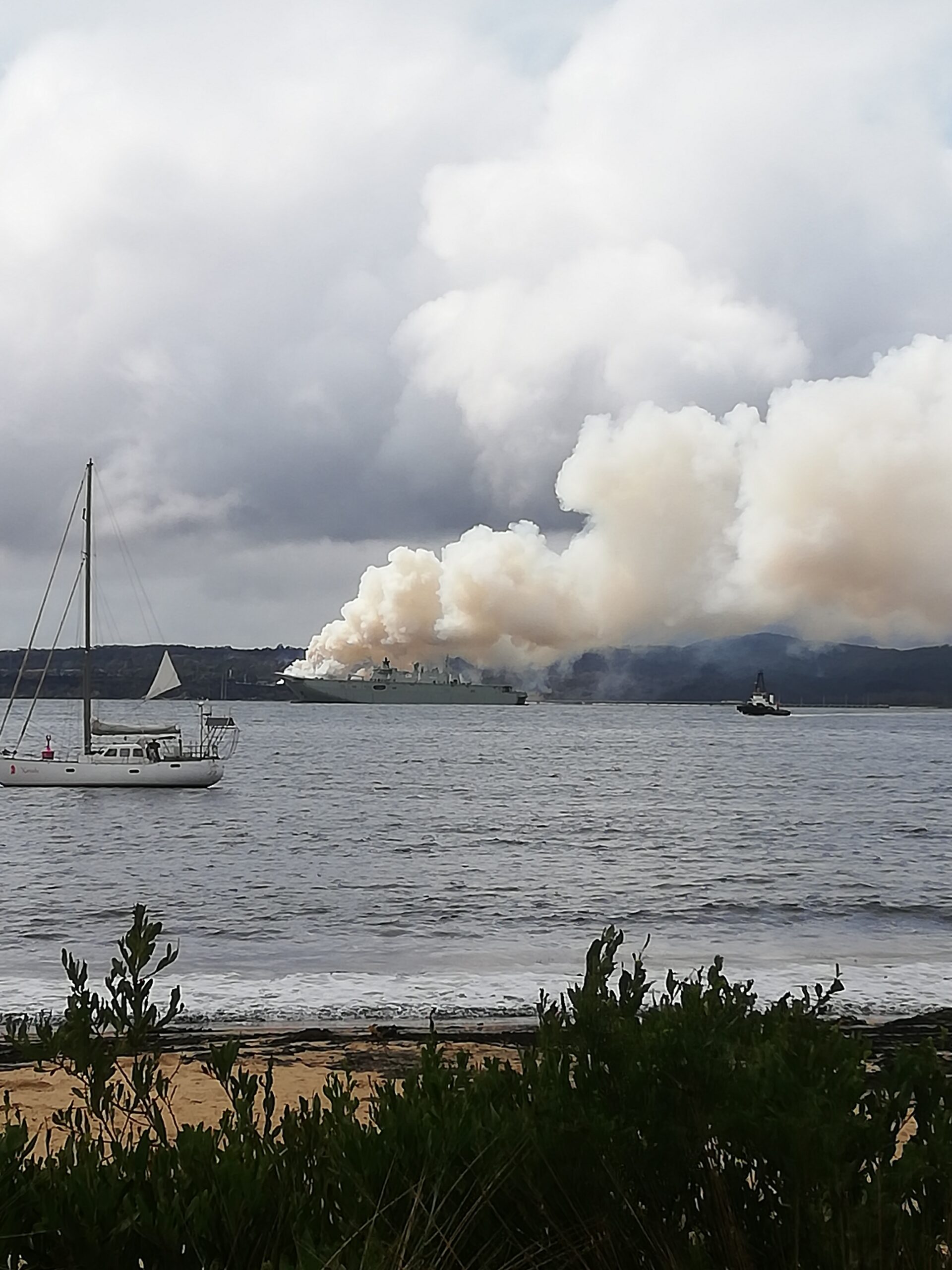 On Sunday evening, Australia’s largest navy ship, HMAS Adelaide, arrived in Eden where it will be based for several days to assist with the bushfire support effort. Four hundred troops are aboard the HMAS Adelaide, in addition to 300 tonnes of emergency supplies.