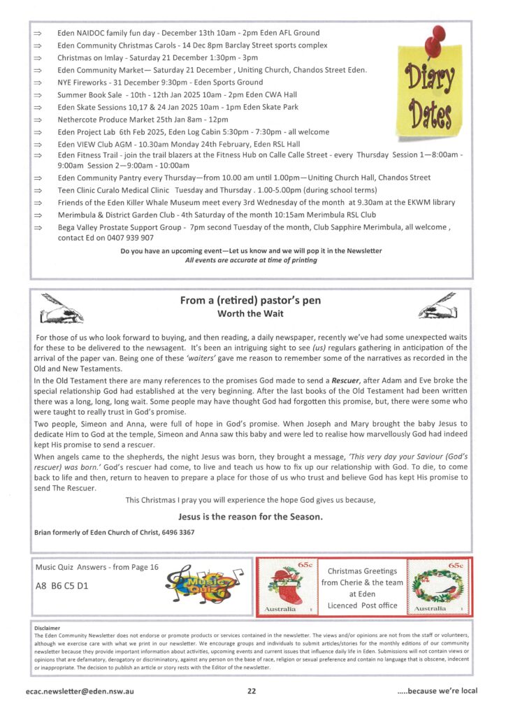 The Eden Connection – Newsletter # Dec/Jan 2025