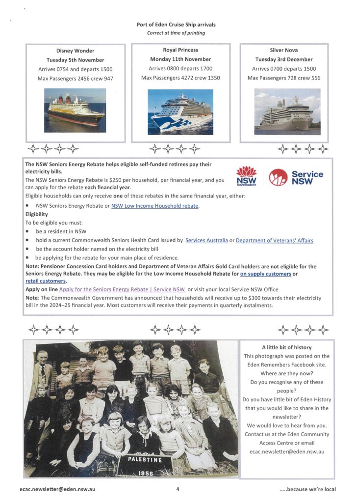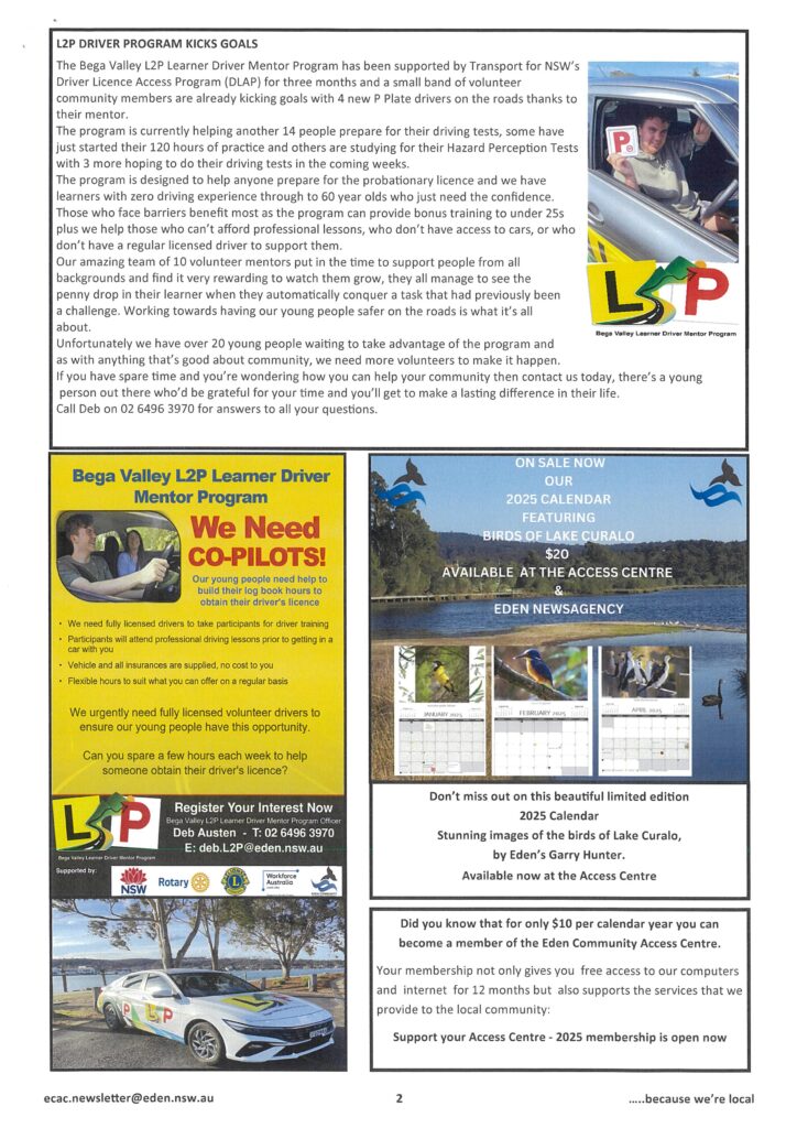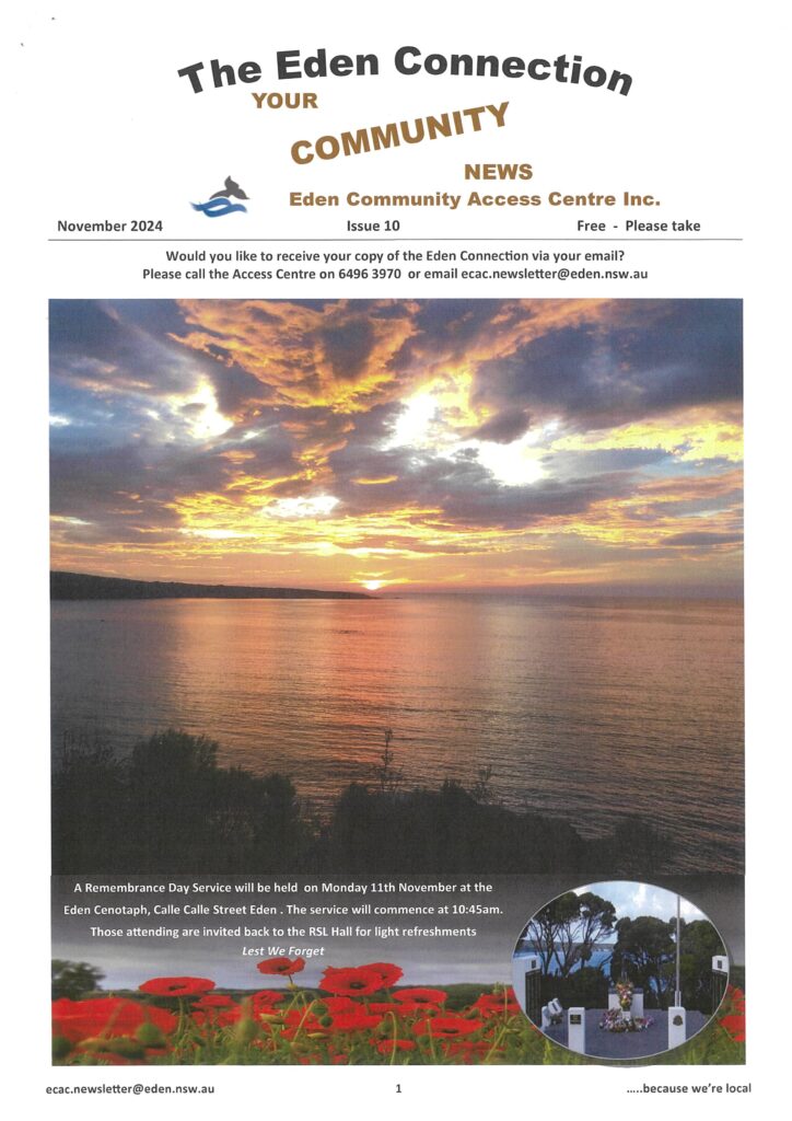 The Eden Community Access Centre is a community owned not-for-profit organisation operating under a management committee. The Access Centre is a member of the Local Community Services Association, which connects rural and regional communities.
