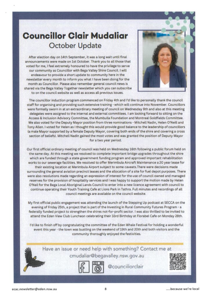 *The Eden Community Site wishes to acknowledge and show our deepest respect for the original shared custodians of this land, the Yuin and Monaro people. We would like to extend that respect to Elders, past present and emerging.
